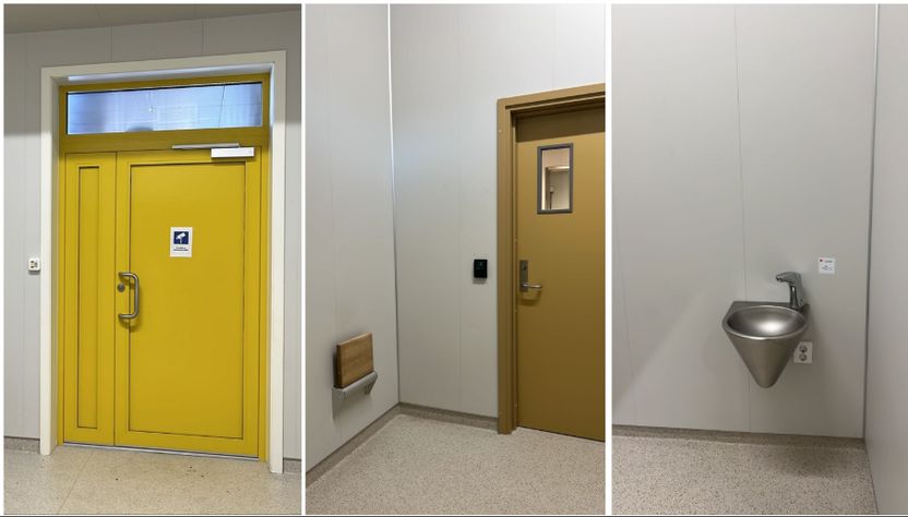 Robustrom med to tilganger: adkomst fra fasade og dør inn til avdelingen. Eksempler på robustinnredning. Legevakten ved Ringerike sykehus HF, Vestre Viken, Helse Sør-ØstFoto: Sykehusbygg HF