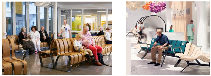 Flere sykehus har desentrale venteareal og venteplasser med nærhet til undersøkelses- og behandlingsrommene. Vinduer med tilgang til dagslys og utsyn oppleves luftigere enn ventearealer plasser i midtkjernen av et bygg.