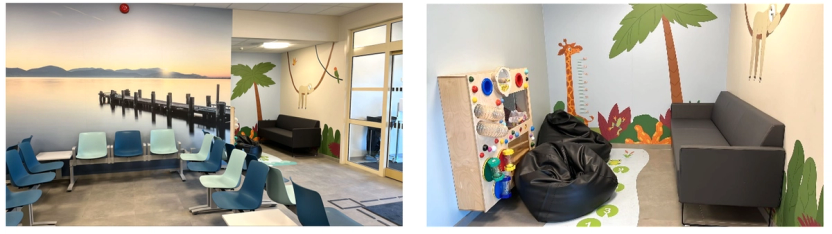 - Ved poliklinikk- eller dagområder som behandler barn bør det være egen ventesone tilpasset dem