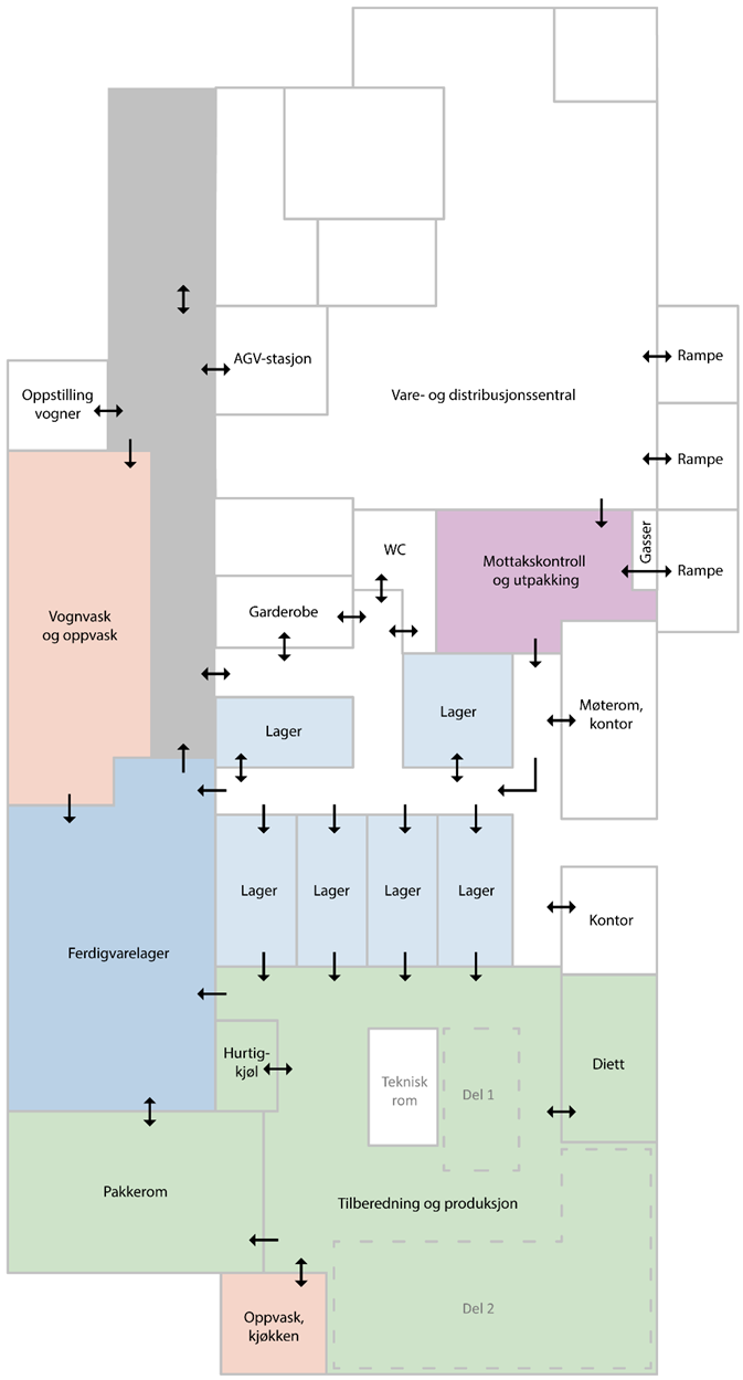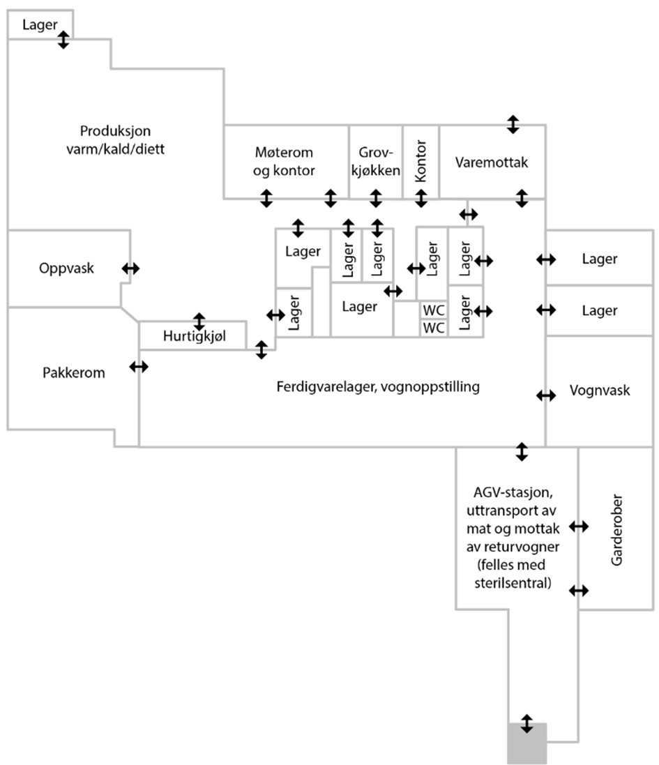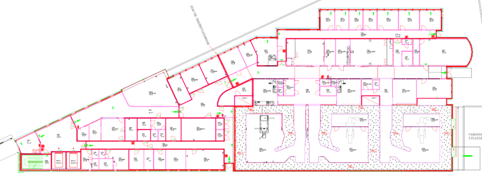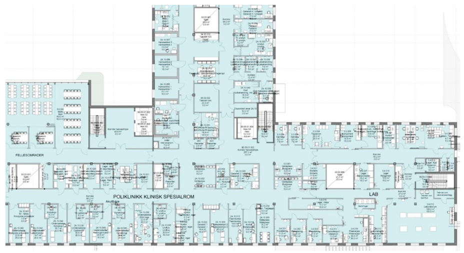 Poliklinikkområde med soneinndeling for pasienter og personell. (2017)