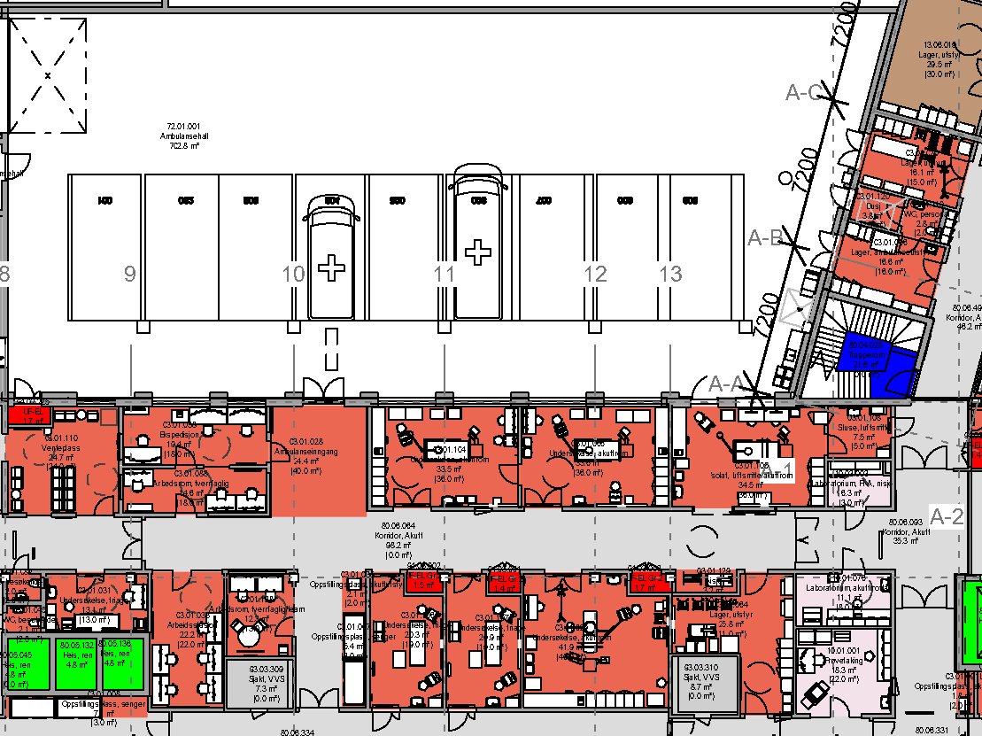 2A.1 Akuttmottak2A.11 Radiologi2A.14 Dagområde2A.9 Operasjon2A.7 Oppvåkning1A.6 Intensiv1A.12 Intermediær1A.8 Nyfødtintensiv1A.1 Barnesengeområde1A.2 Barneintensiv1A.9 Normalsengeområde