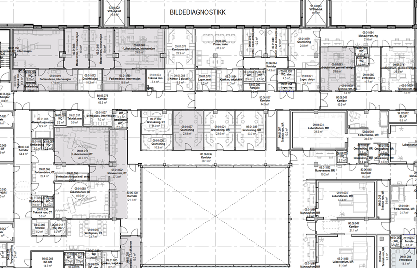 Skisse Nytt klinikkbygg Radiumhospitalet, område for CT, MR røntgen, angiografi (Kilde: Sykehusbygg HF)