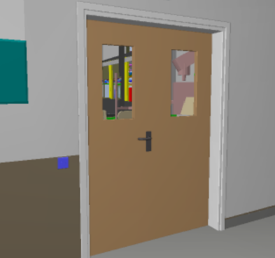 Dør fra intensivrom mot korridor er en tofløyet dør med vindu. Evt. skjerming i glass i dør er ikke avklart ennå.