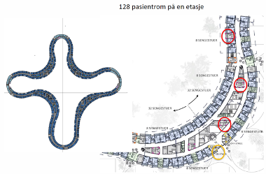 Sykehuset med denne slangeformen bygges i Hillerød og har sengeområder med en organisk form bygget oppå en base av behandlingsarealer. Det er 570 senger og 100% ensengsrom. Sengerom bygges etter et standardkonsept med flytende grenser mellom spesialitetene ut fra prinsippet om «Bruksrett framfor eierskap». Sengerom på plan 2 og 3 orienterer seg alle enten mot den store takhagen eller mot landskapet rundt om sykehuset.