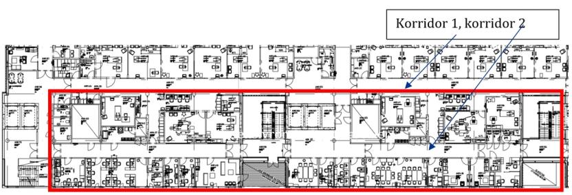 Intensivenheten i Akutt- hjertelungesenteret, St. Olavs hospital er utformet med dobbeltkorridor der intensivrommene er på hver side av en korridor, mens den andre korridoren i hovedsak består av kontorer, møterom og pårørenderom.