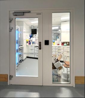 Rommet skal være låst med adgangskontroll, men man skal kunne se inn enten ved vindu i vegg eller dør, se bildet under.
