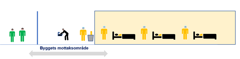 - Bør kunne håndtere en mulig smitteførende pasient i mottak med tanke på fysisk utforming