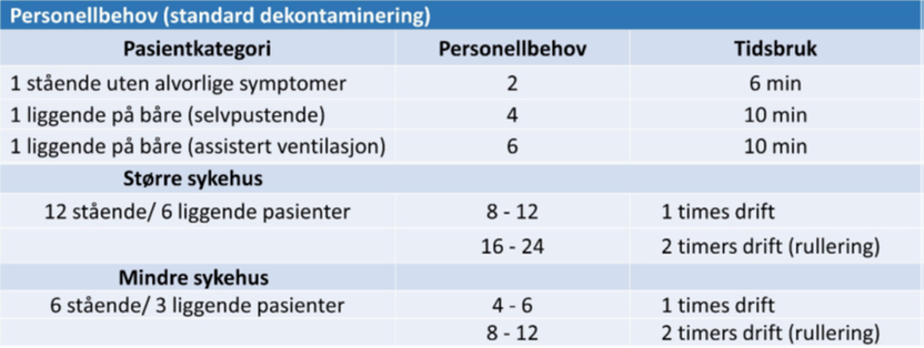 Enheten bør være klar til å dekontaminere pasienter maks 15 minutter etter varsel