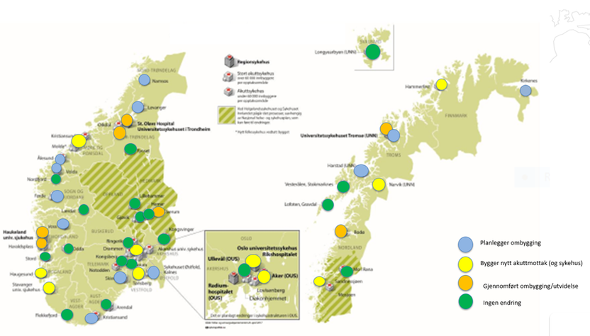 Det pågår mye ombygging, utvidelse og nybygg av akuttmottak i Norge. Det er derfor viktig at de som planlegger og bygger samler kunnskap og erfaringer fra eksisterende og planlagte prosjekter om hvorfor dette skjer, og hvordan man kan imøtekomme framtidens behov.