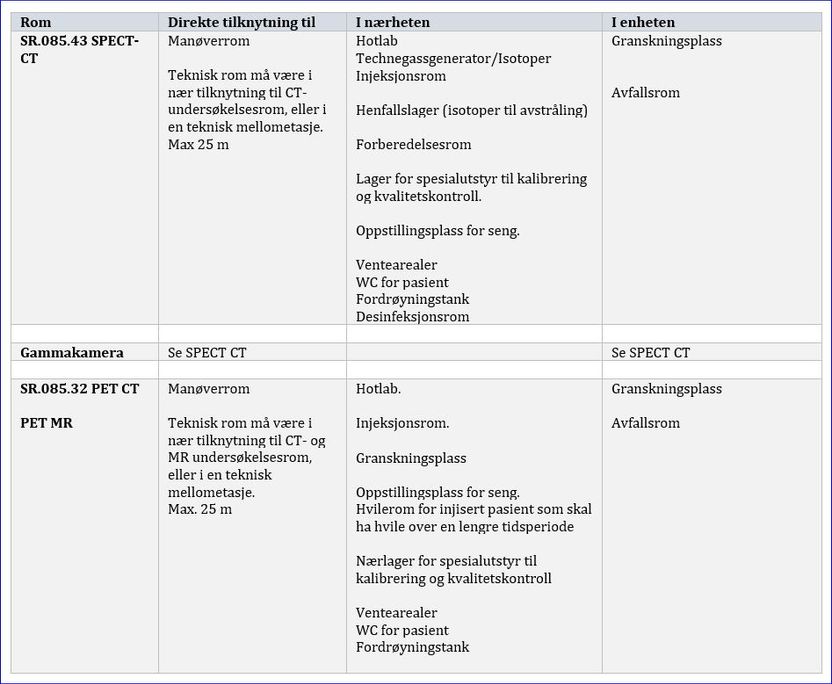 Tabell 2. Nærhet laboratorium og støtterom Nukleærmedisin og PET (Kilde: Sykehusbygg HF)