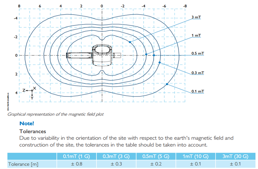 Figur 2 viser en skisse over magnetfeltets styrke utenfor modaliteten. Dette må vektlegges også i forhold til tilstøtende rom av hensyn til fare for pasientskade, og MR utstyr skal, blant annet ikke, plasseres nær operasjonsstuer (horisontalt eller vertikalt).