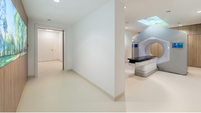 - Områder med dempet belysning og avslappende atmosfære hvor pasienter kan hvile og roe seg før eller etter behandlinger kan bidra til at bygget oppleves som varmt og ivaretakende.