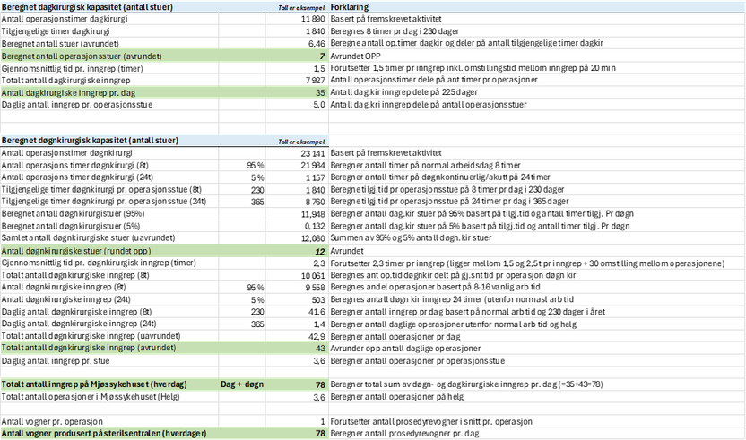 Eksempel på beregninger for dag- og døgnkirurgiKilde: Sykehusbygg HF