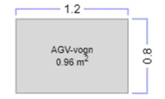 Et dedikert område for lagring av AGV/AMR-vogner bør etableres på steril sone. Cellen illustrert i figur viser én AGV/AMR-vogn og kan ganges opp etter behov på hvert sykehus. Ved oversiktlig og tilgjengelig lagring av AGV/AMR-vogner unngås rot og uorden på sterilsentralen og det gir bedre oversikt og dermed også et bedre og sikrere arbeidsmiljø. Manuelt arbeid knyttet til denne cellen er forflytning og organisering av vognene.