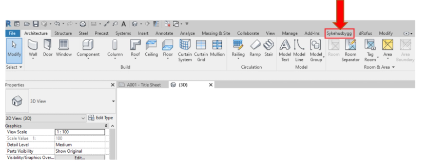 Revit-addin Sykehusbygg BIM-kravdatabase