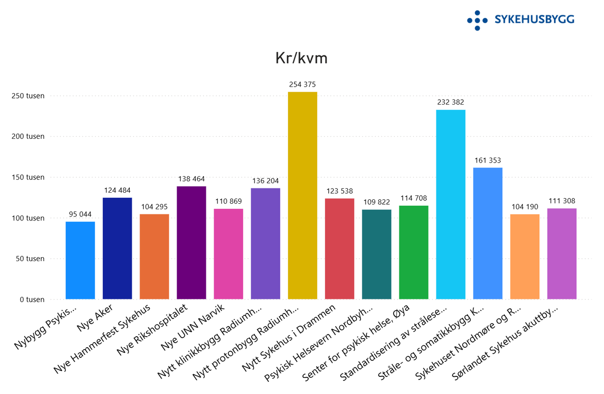 Databasen gir en mulighet for sammenligning av prosjekter basert på region og prosjekttype. Kontoplanen viser kostnadene pr kvadratmeter, men du kan også se prosjektdetaljer som viser opprinnelig kostnad og indeksert kostnad.