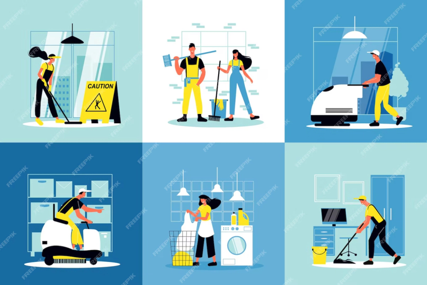 - Planlegging, utføring, daglig renhold, periodisk renhold, hovedrengjøring, ekstraoppgaver, kontroll og rapportering.